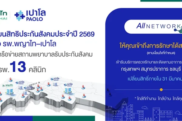 เปลี่ยนสิทธิประกันสังคม 2569: พญาไท–เปาโล เปิดเครือข่าย 8 รพ. 13 คลินิก ครอบคลุมหลายพื้นที่