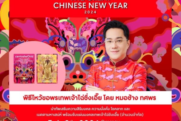 เปิดศักราชปีมังกร “หมอช้าง-ทศพร” นำทัพจัดพิธีไหว้เทพเจ้าไฉ่ซิงเอี๊ย สุดยิ่งใหญ่เสริมความมั่งคั่งร่ำรวย ครั้งแรกในประเทศไทย 9 กุมภาพันธ์นี้ หน้าลานศูนย์การค้าเซ็นทรัลเวิลด์