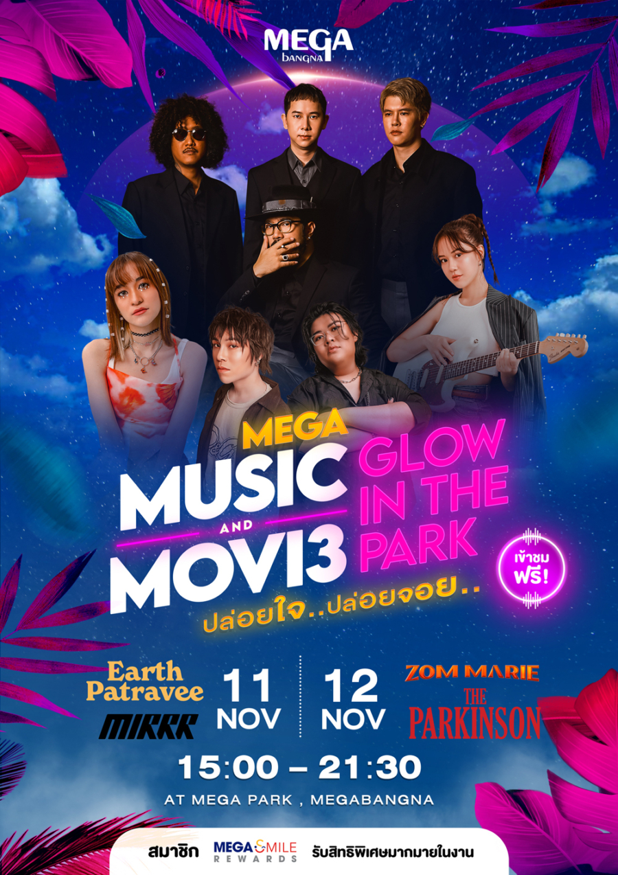เพลิดเพลินไปกับแสงสี เสียงดนตรี และหนังเรื่องโปรด ในบรรยากาศสวนเรืองแสงกับงาน MEGA MUSIC AND MOVIE GLOW IN THE PARK เปิดเข้าชมฟรี! วันที่ 11 และ 12 พฤศจิกายน 2566 เวลา 15.00 น. – 21.30 น. ณ เมกา พาร์ค ศูนย์การค้าเมกาบางนา ดูรายละเอียดกิจกรรมและสิทธิพิเศษสำหรับสมาชิกเมกา สไมล์ รีวอร์ดส เพิ่มเติมได้ที่ แอปพลิเคชัน เมกาบางนา หรือ WWW.MEGA-BANGNA.COM
